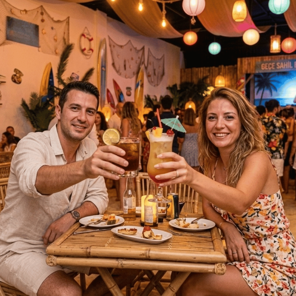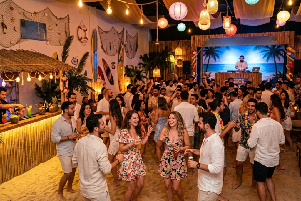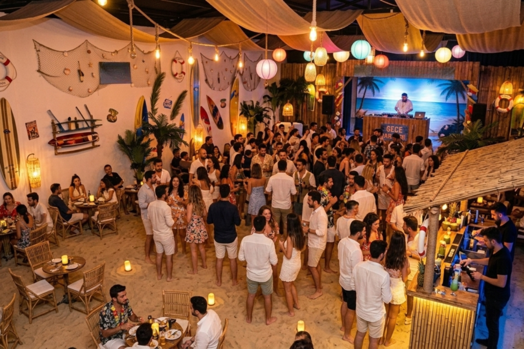 Kumsal temalı dekor, enerjik müzikler ve sahil atmosferiyle misafirlerinize unutulmaz bir eğlence gecesi sunuyoruz.